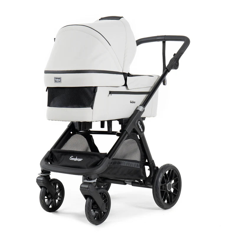 Her bruger du det samme stel til barnevognskassen samt det medfølgende Ergo klapvognssæde