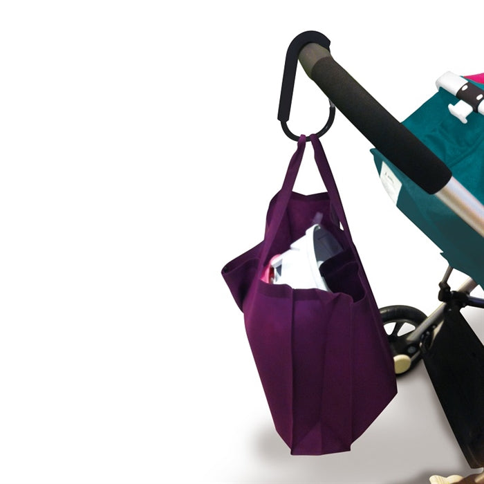 kniber det med plads i varekurven, så kan man nemt hænge denne krog på styret og dermed hænge poser eller tasker på din barnevogn.