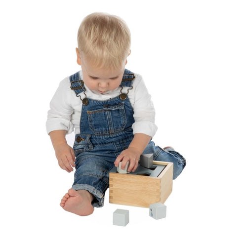 En puttekasse træner barnets tålmodighed, koncentration og fin motorik når klodserne skal styres ned i de rigtige huller. Barnet lærer her også om forskellige former, en firkant, en sekskant, en cirkel og en trekant.