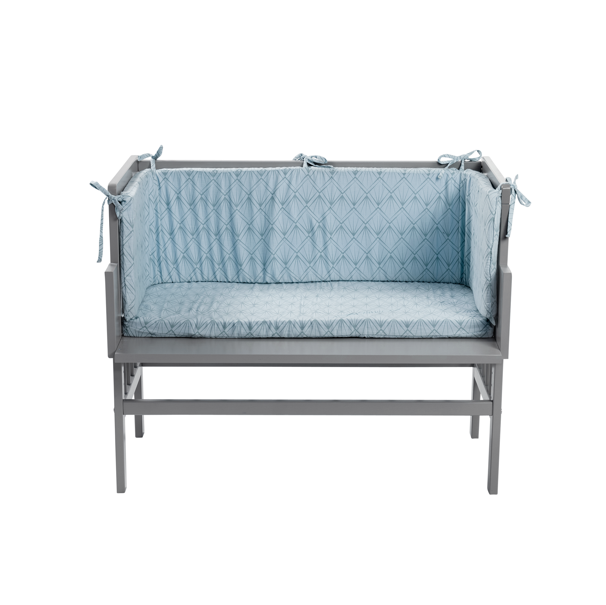 Derudover skaber man afskærmning, så baby ikke får arme og ben ud mellem tremmerne i sengen.