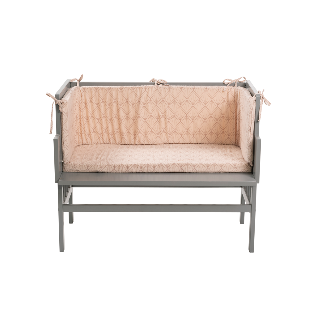 Derudover skaber man afskærmning, så baby ikke får arme og ben ud mellem tremmerne i sengen.