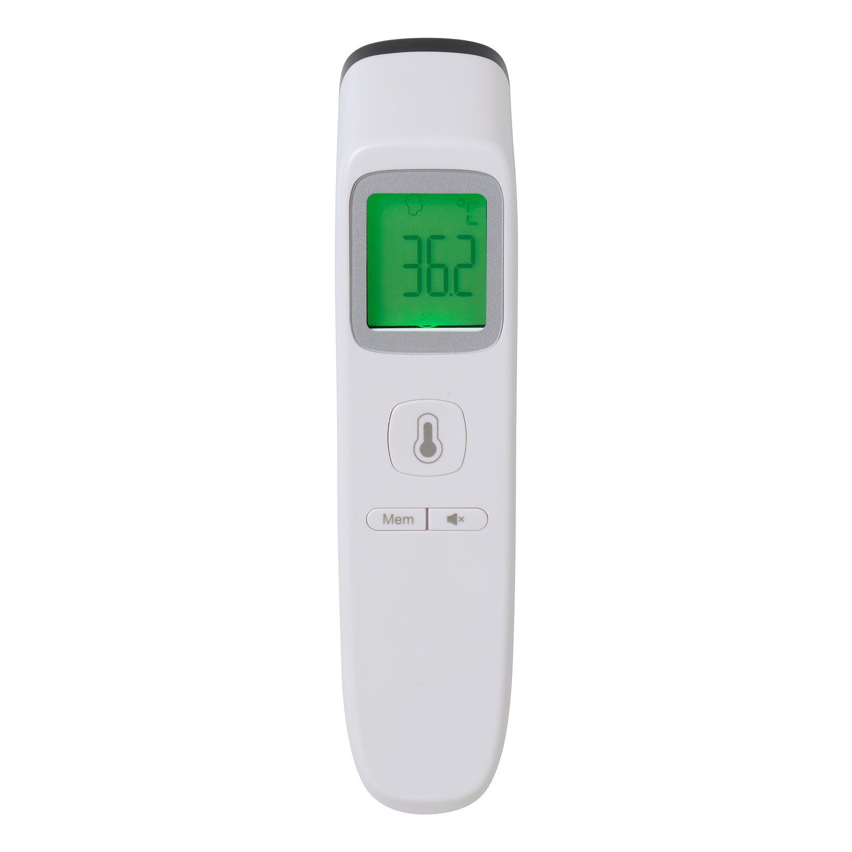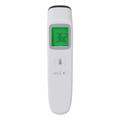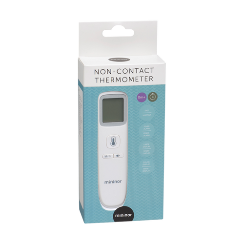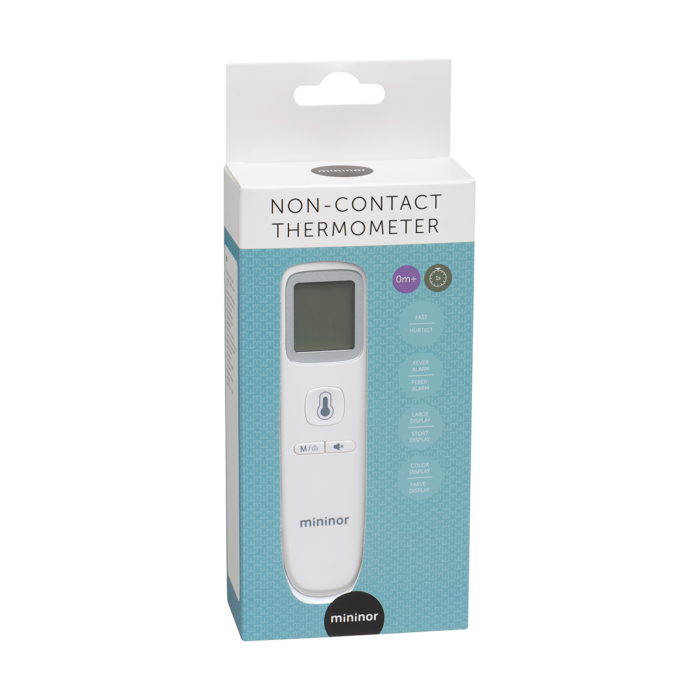 - Displayet skifter farve efter endt måling til enten grøn (normal temperatur), orange (lidt feber) eller rød (høj feber).
