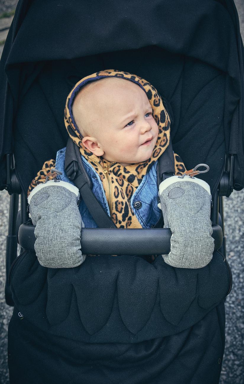 Uanset om barnet vil holde fast i frontbøjlen eller hjælpe dig med at skubbe barnevognen på sit ståbræt, er Najells håndvarmer der for at holde hænderne varme. De har blødt og behageligt fleecefor, blødt fyld og vandafvisende yderside. Du kan nemt sætte dem fast på bøjlen eller barnevognen, så de kan holde sig varme og glade på alle de kølige eventyr i barnevognen.
