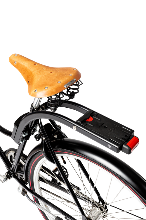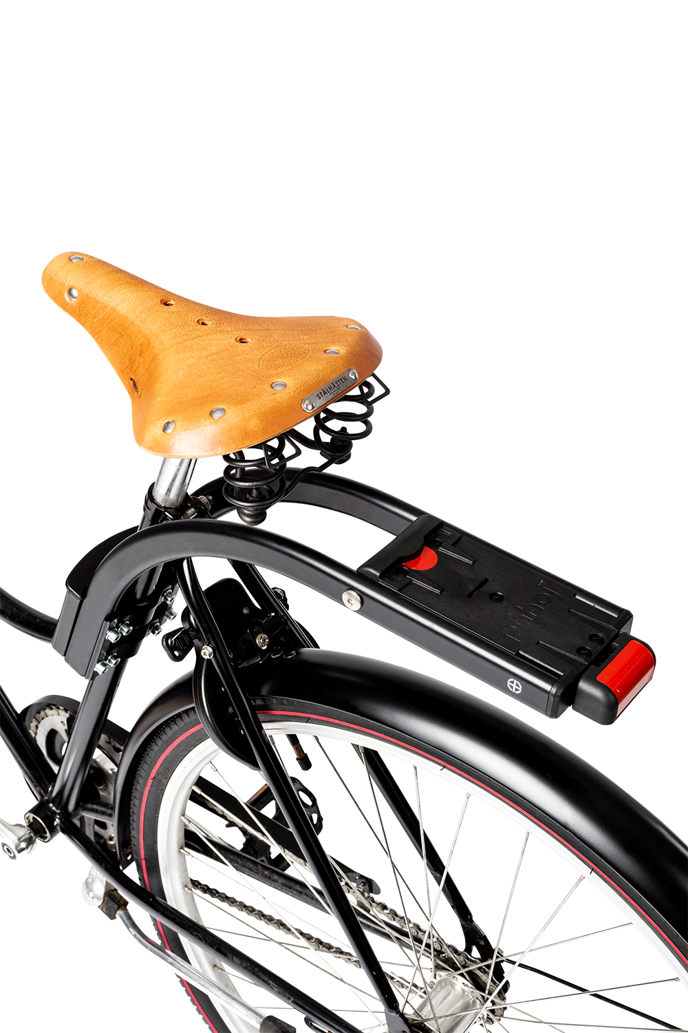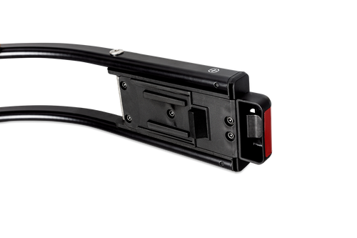 Adapteren er monteret på rammen og har en glat sikkerhedslås, der nemt kan fastgøres og løsnes på Påhoj cykelstolen.