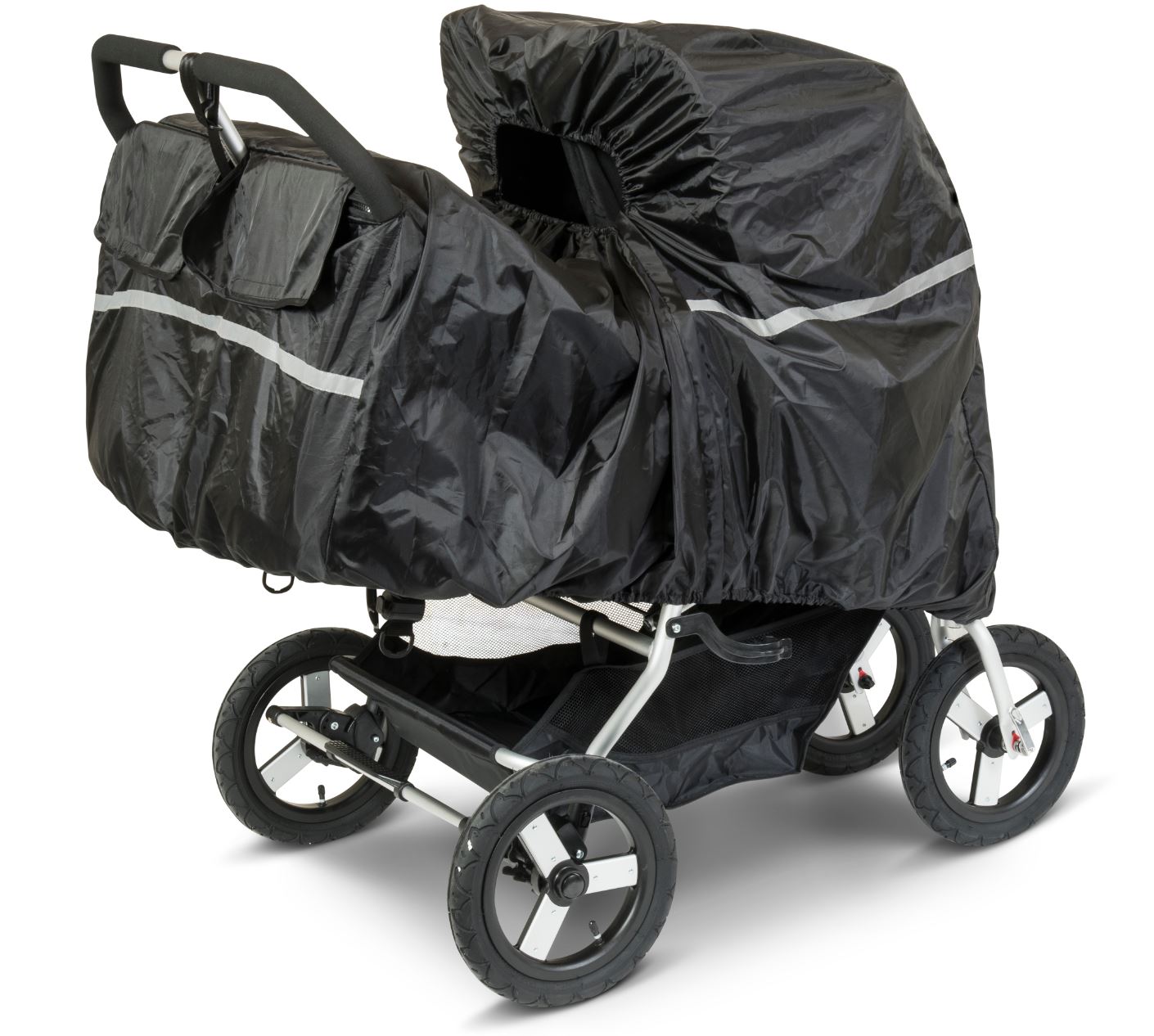 Åndbart regnslag til Indie Twin Bumbleride som søskendevogn, hvor man har barnevognskasse i den ene side.