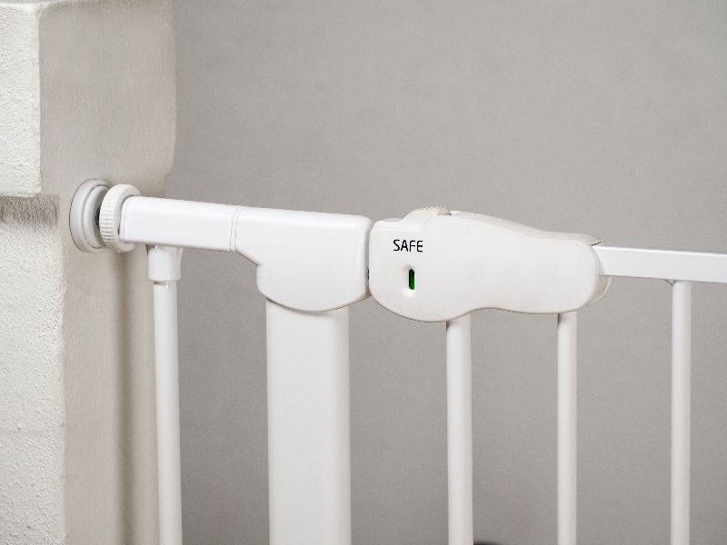 Presmonteret sikkerhedsgitter for børn der er nemt for voksne at åbne men svært for børn