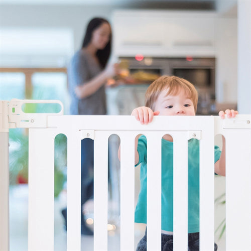 Safe and Care dørgitter kan åbnes i begge retninger op til 180 grader i fulde bredde.