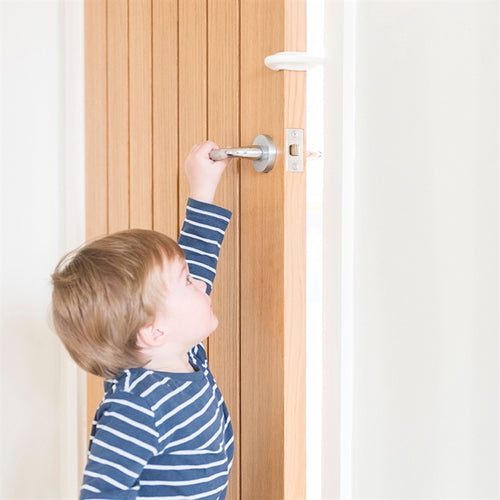 Beskytter små fingre fra at blive klemt i døre og forhindrer, at de kan låse sig selv inde i rum.