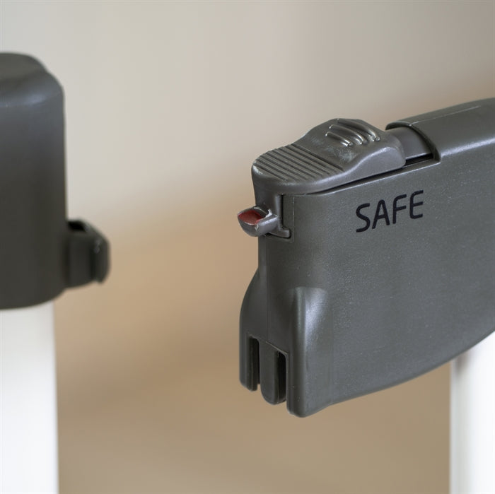 Børnesikker dobbelt-betjening. Svært for børn, men enkelt for voksne.
