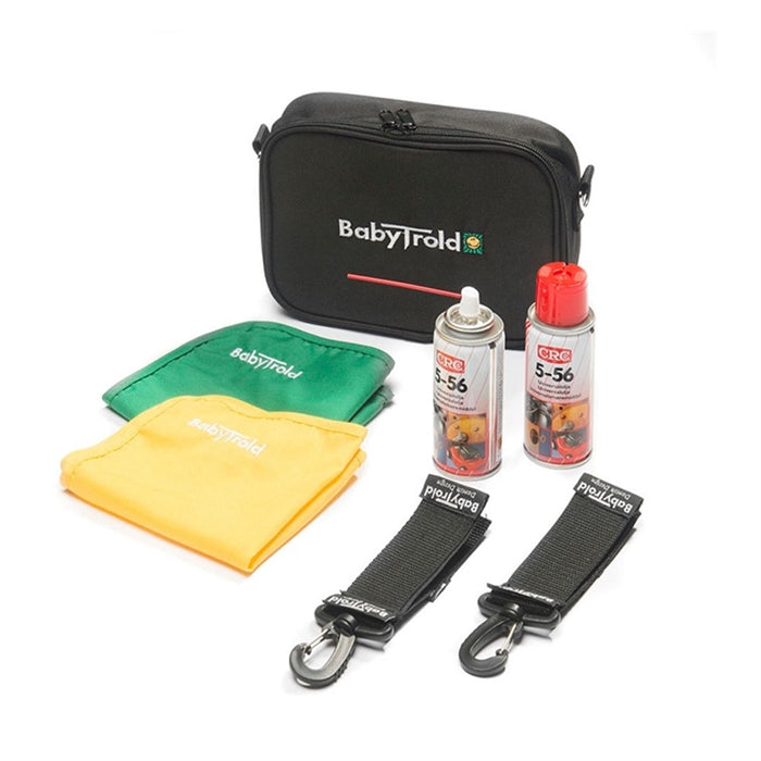 Service Kit til vedligeholdelse af barnevogne og klapvogne. Sættet indeholder følgende: - 2 stk. universal smøreolie. Egenskabber: beskytter mod rust og fugt. Løsner rust og fast siddende mekanismer. - 2 stk. klude - sæt krog ( 2 stk) til at hænge tasken på vognenService Kit til vedligeholdelse af barnevogne og klapvogne. Sættet indeholder følgende: - 2 stk. universal smøreolie.