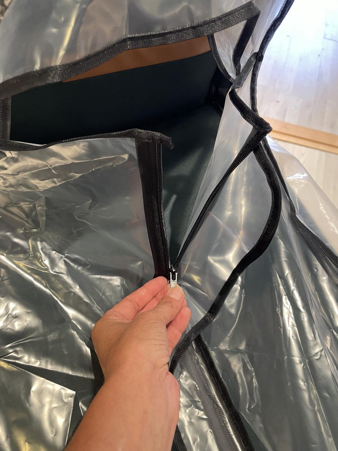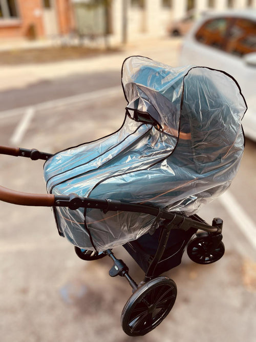 Sunny Regnslag i gennensigtig med lynlås midt for, så det er nemt at komme ned til barnet.