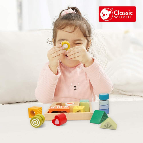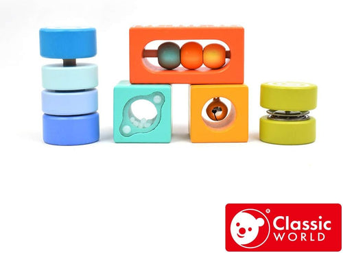 Alle klodserne kommer i en trækasse, så de står pnæt samlet når der ikke leges med dem,