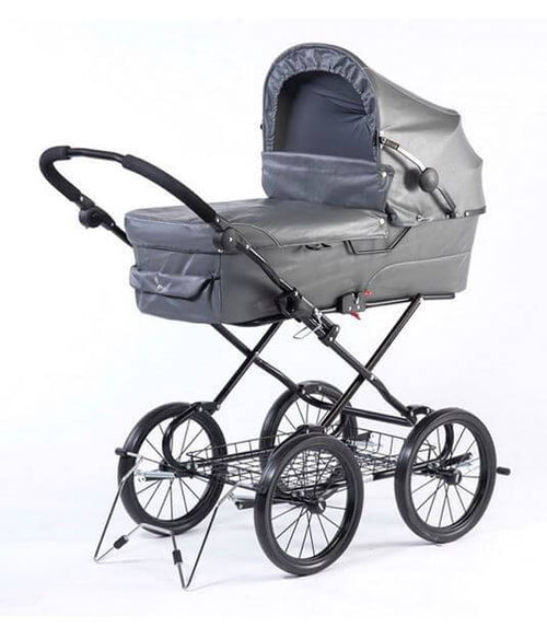 Gigant er udstyret med seleringe til barnevognssele i den ventilerbare bund, dobbelt støttefodsbremse, fuld understøtning af barnevognskassen og justérbart styr.