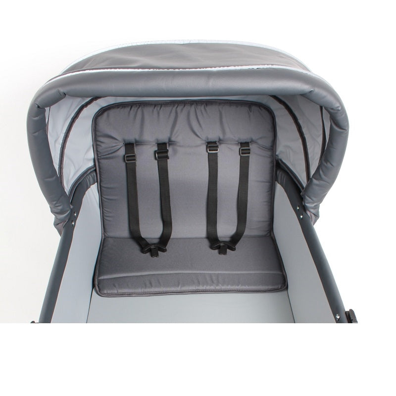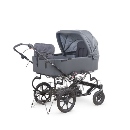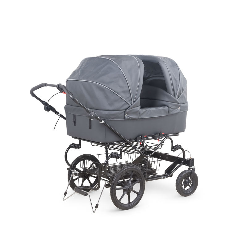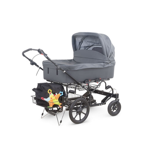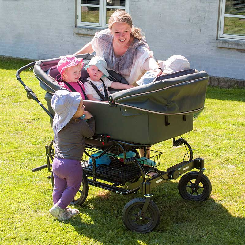 Vognen har hul i bunden til benkurv og fodstøtte så vognen kan bruges til 4 siddende børn.