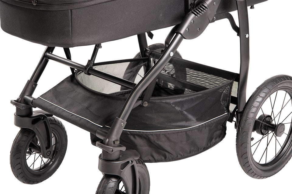 Håndtaget er justerbart og betrukket med blødt læder, så det er behageligt at holde ved. Under barnevognskassen er der monteret en ekstra støttefunktion, som gør vognen særligt robust og derfor velegnet til børn helt op til 3 år.