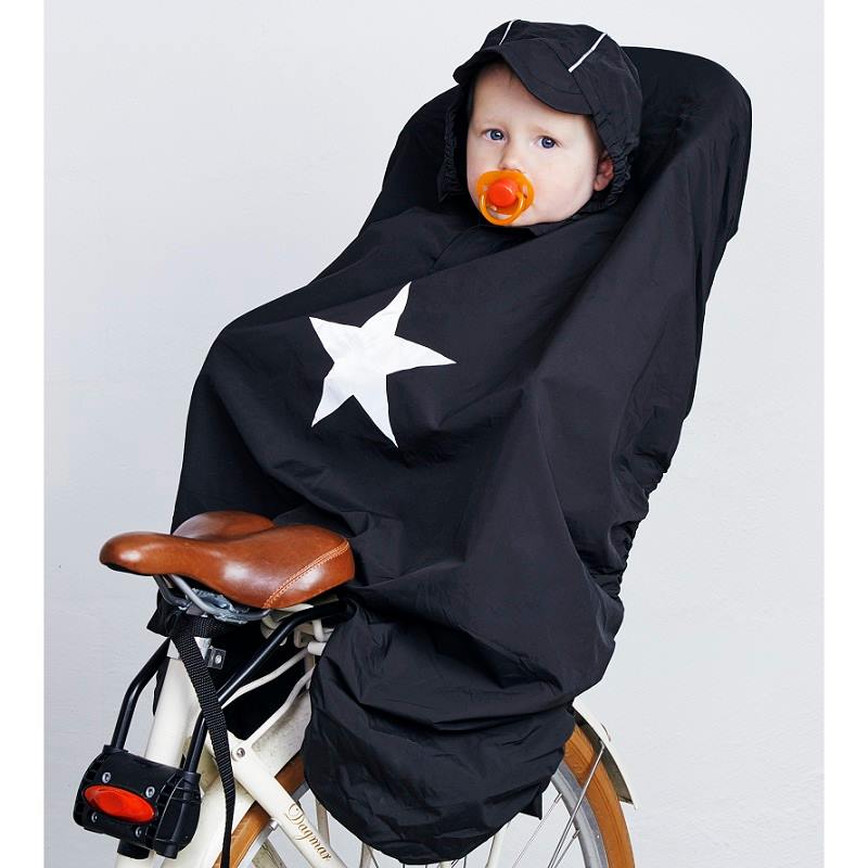 Regnslaget har reflekser på hætten og en stjerne foran.