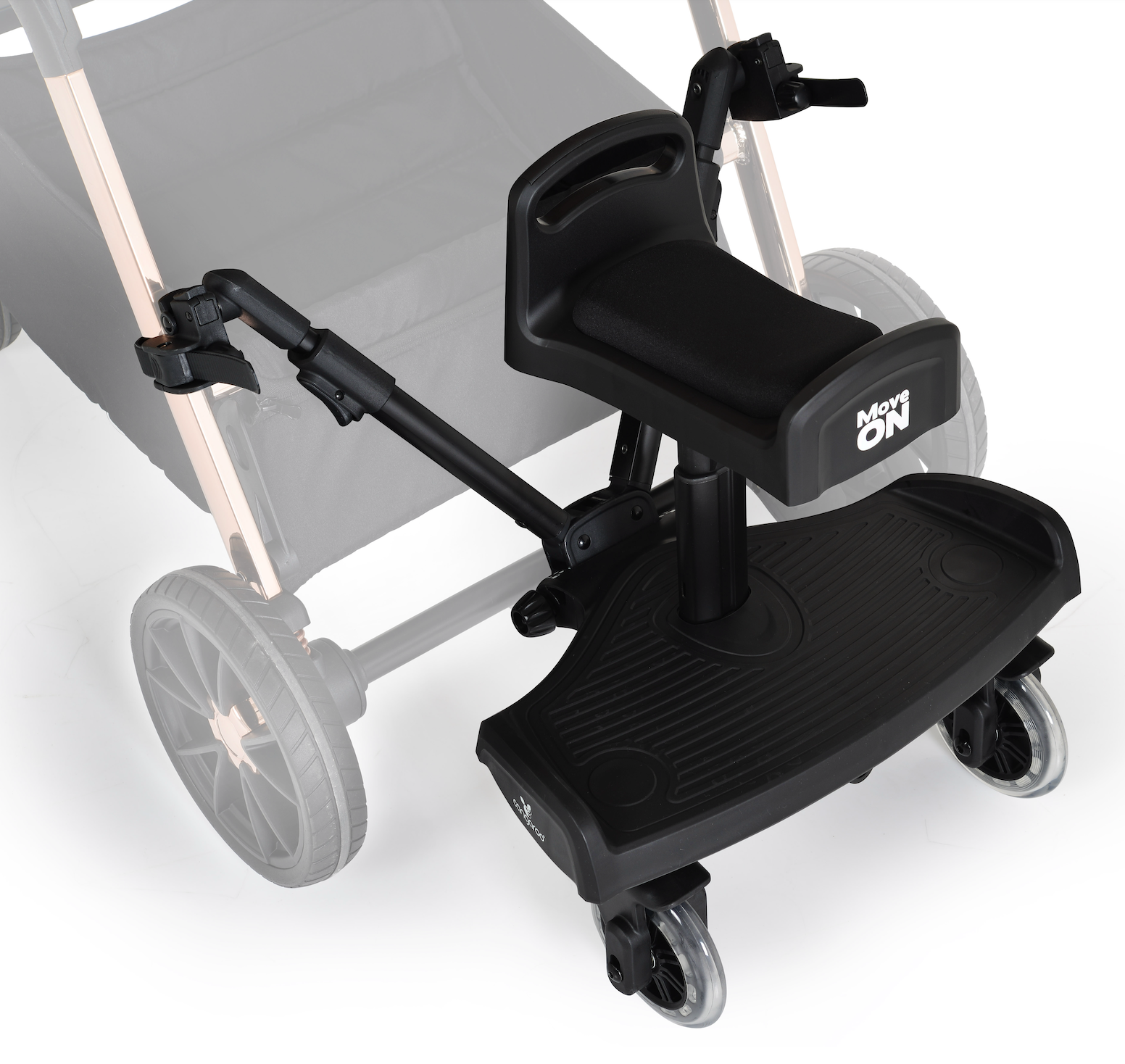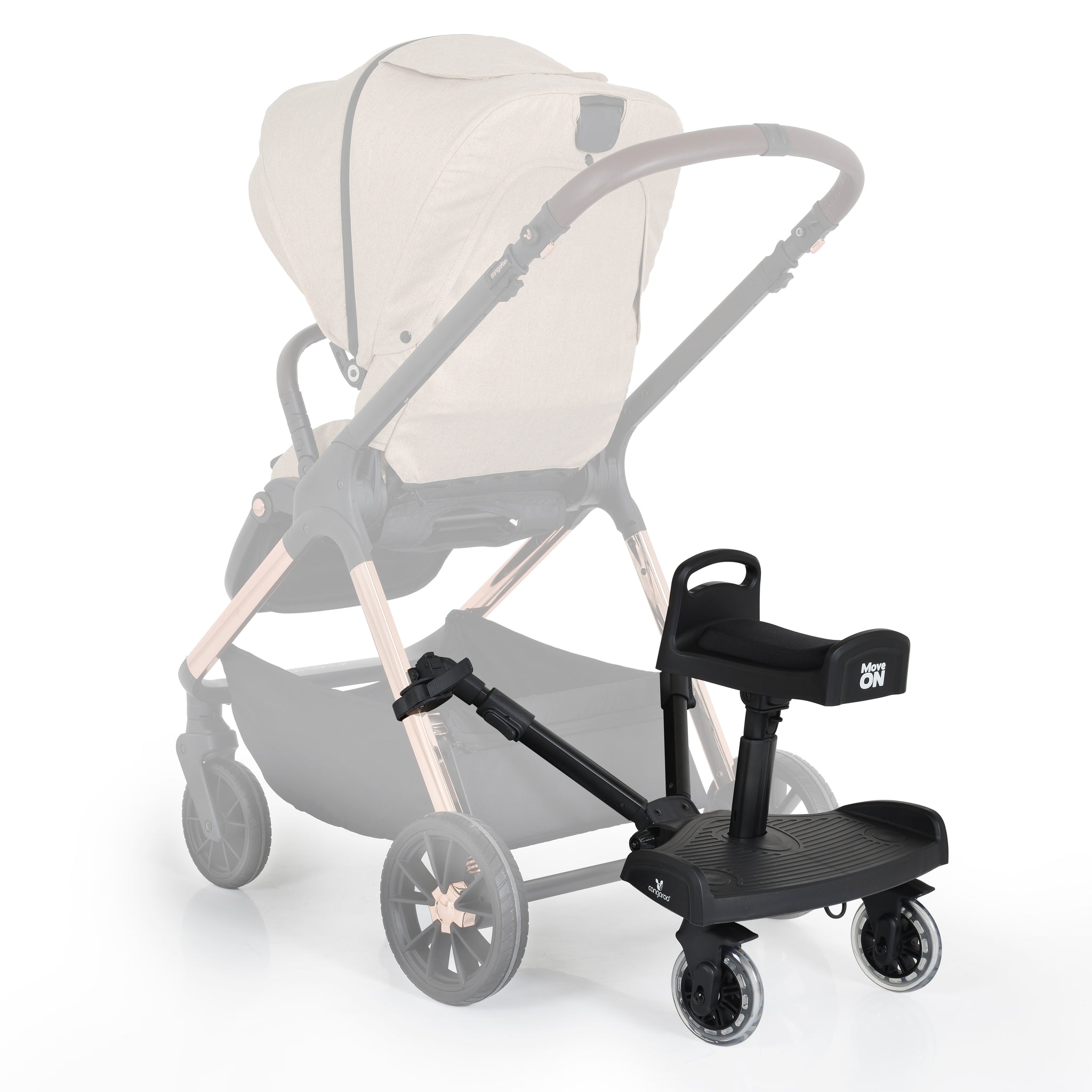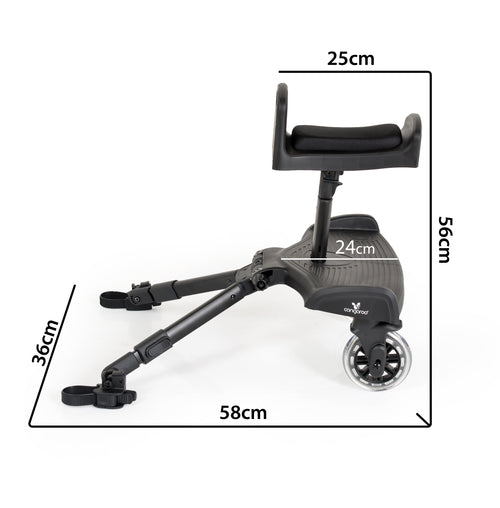 Universal ståbræt med sæde til montering på næsten alle typer klapvogne.