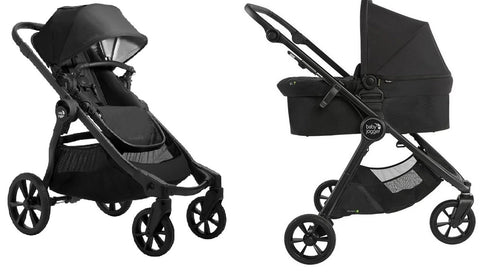 Baby Jogger City Select kombivogn med barnevognskasse samt et vendbart klapvognssæde.