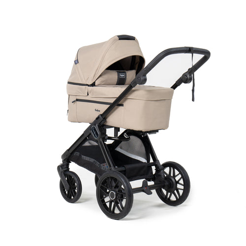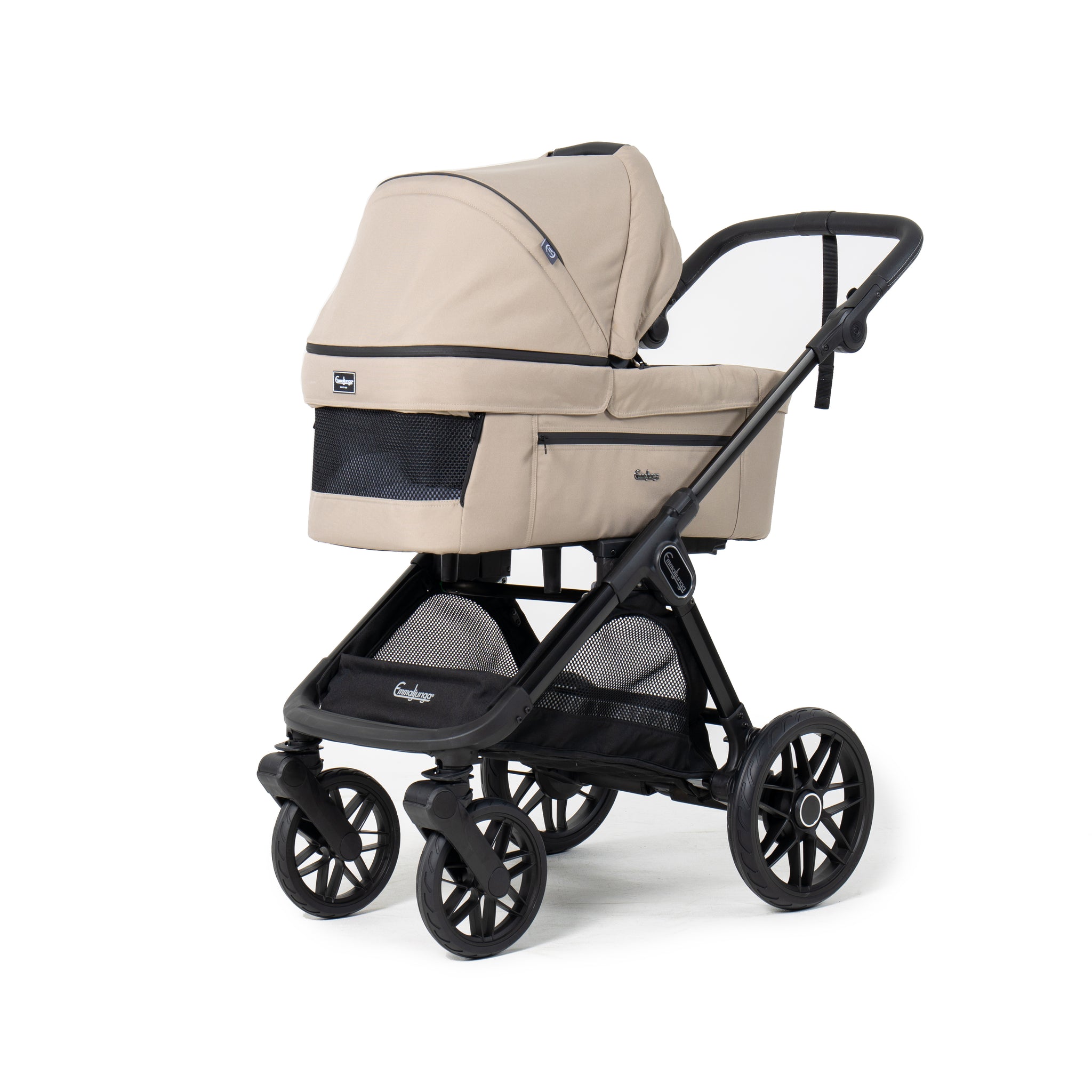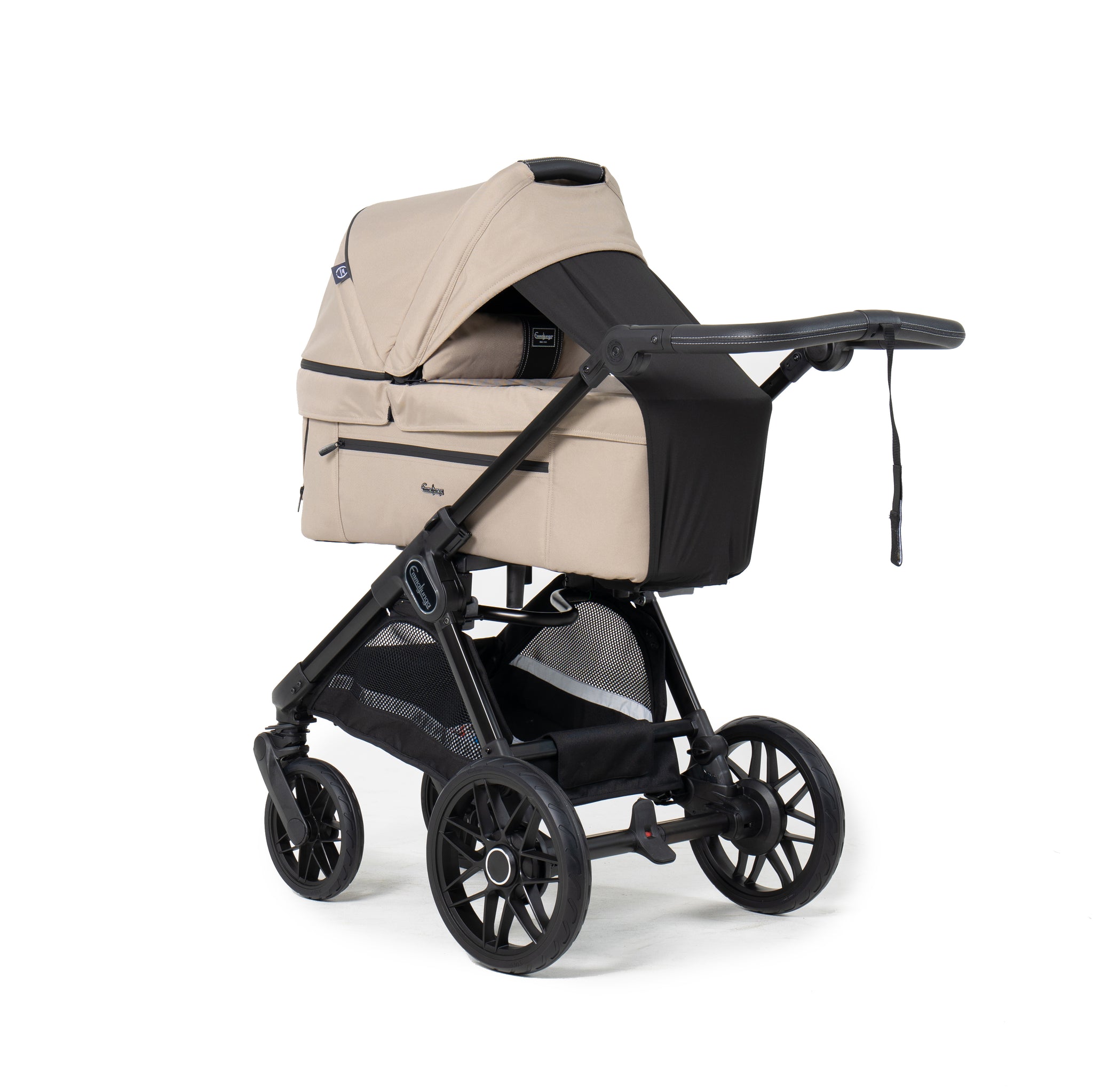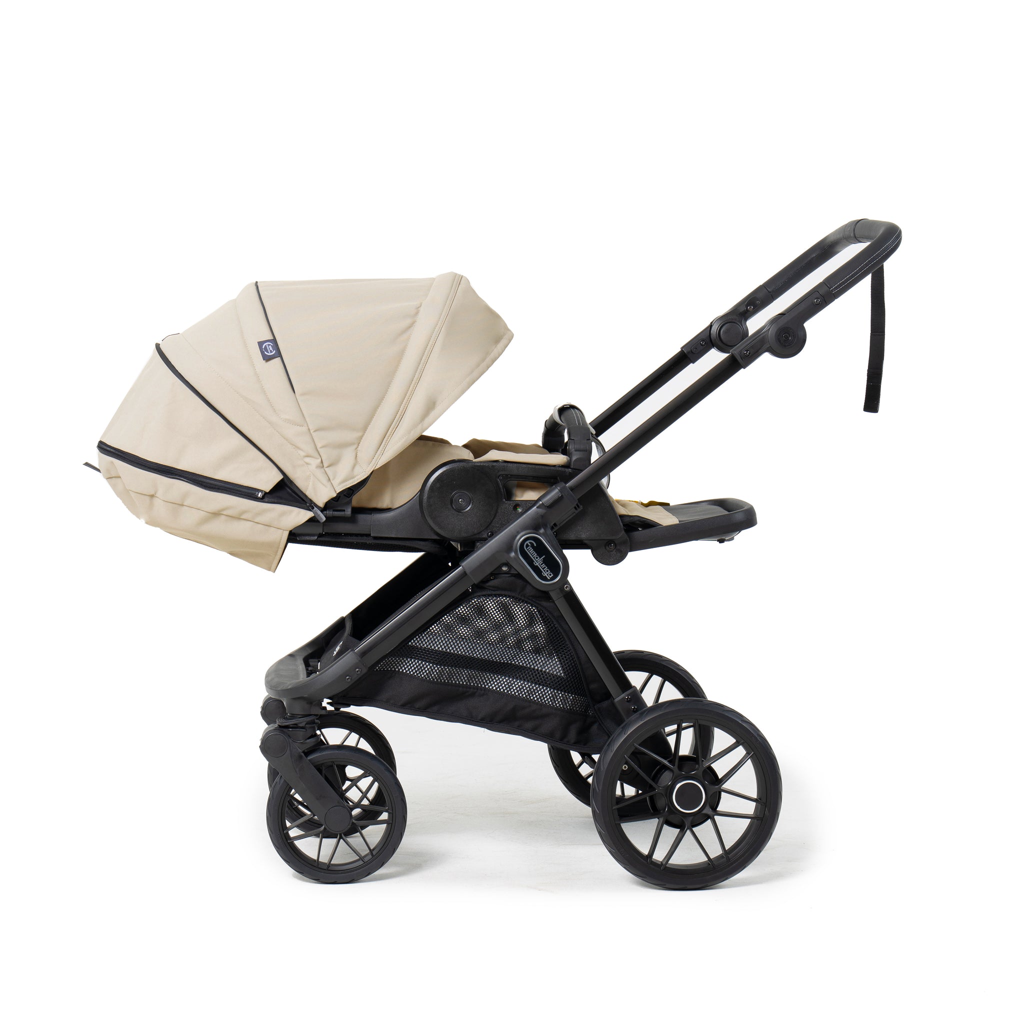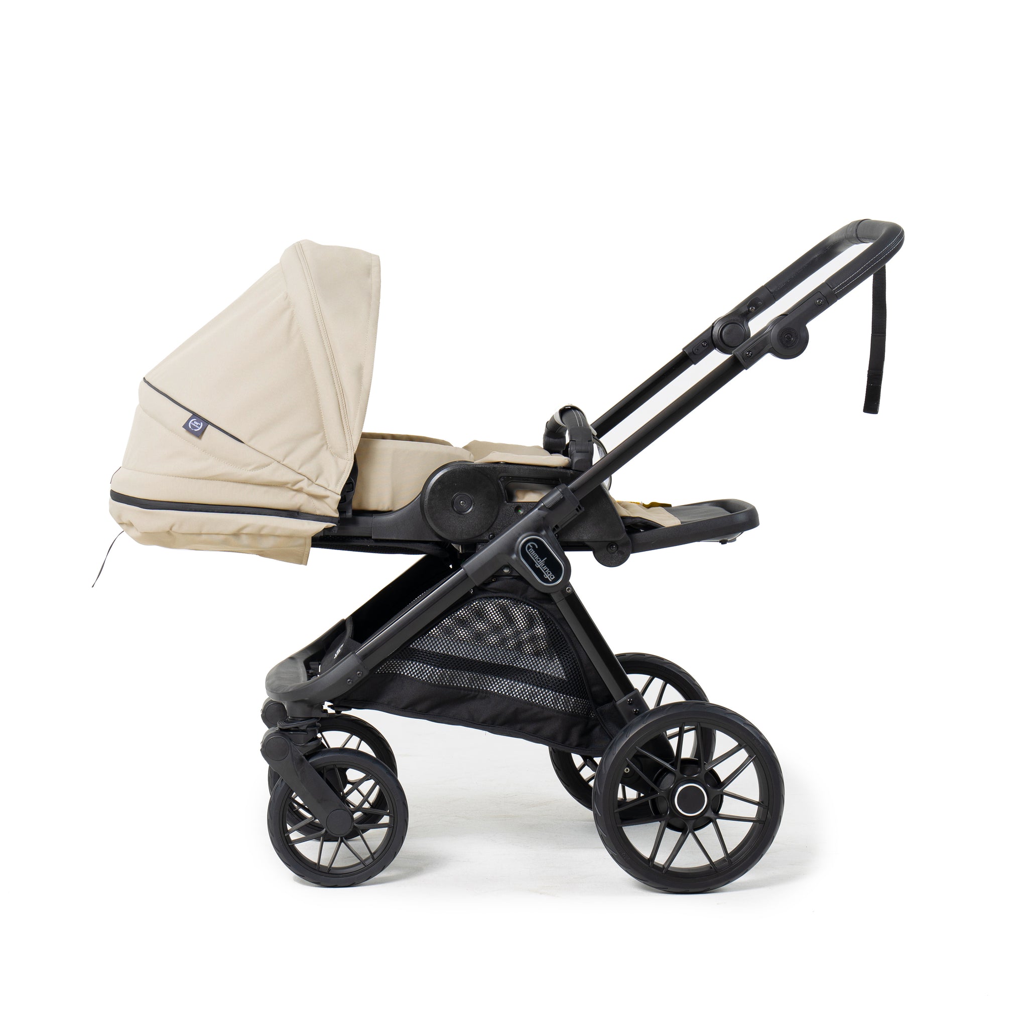 Her bruger du det samme stel til barnevognskassen samt det medfølgende Ergo klapvognssæde