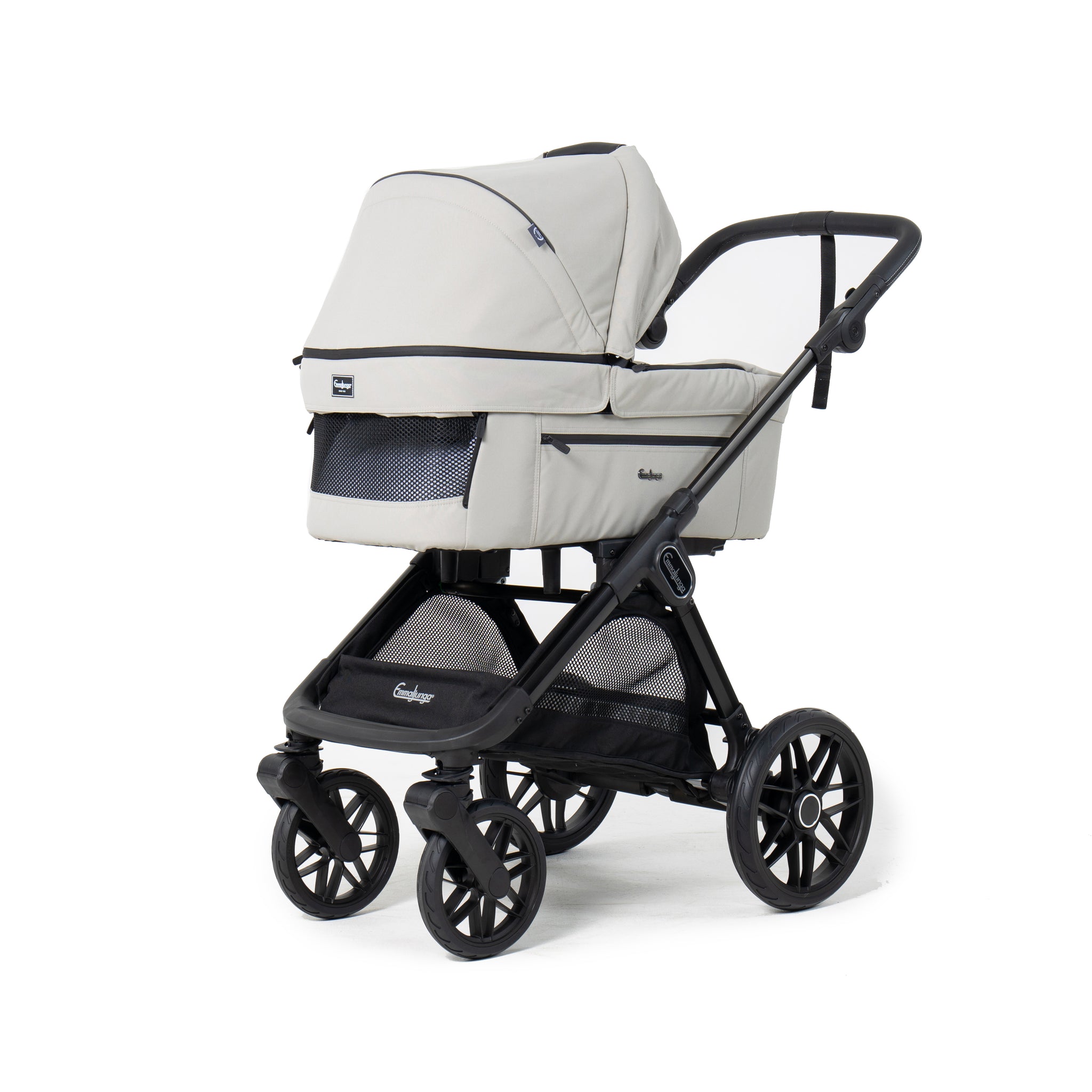 Her bruger du det samme stel til barnevognskassen samt det medfølgende Ergo klapvognssæde