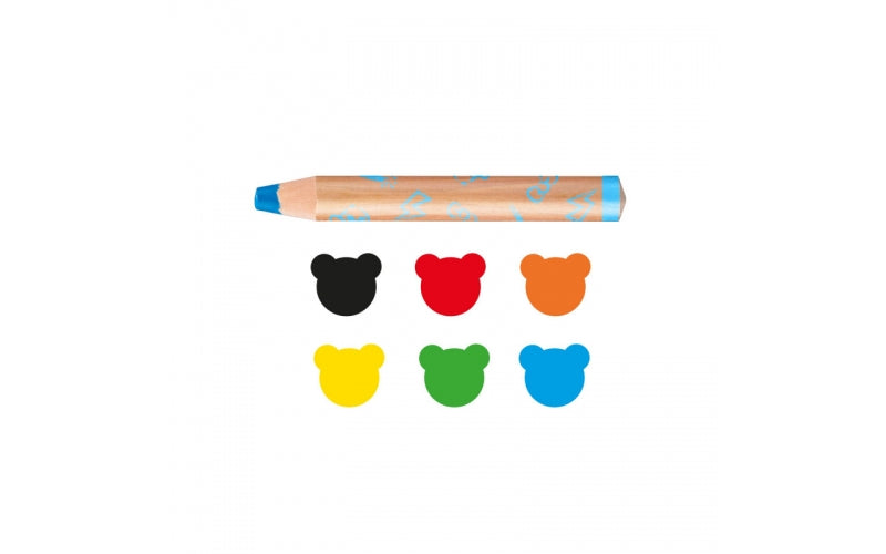 6 stk forskellige farver, de er nemme at holde om for små hænder da de ikke er så tynde, hvilket går at barnet kan få et godt greb om blyanten.