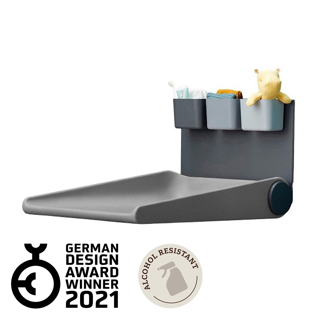 Leander Wally™ er et væghængt puslebord med et moderne design, der ikke fylder meget i indretningen, men som til gengæld gør en stor forskel i hverdagen med et lille barn.
