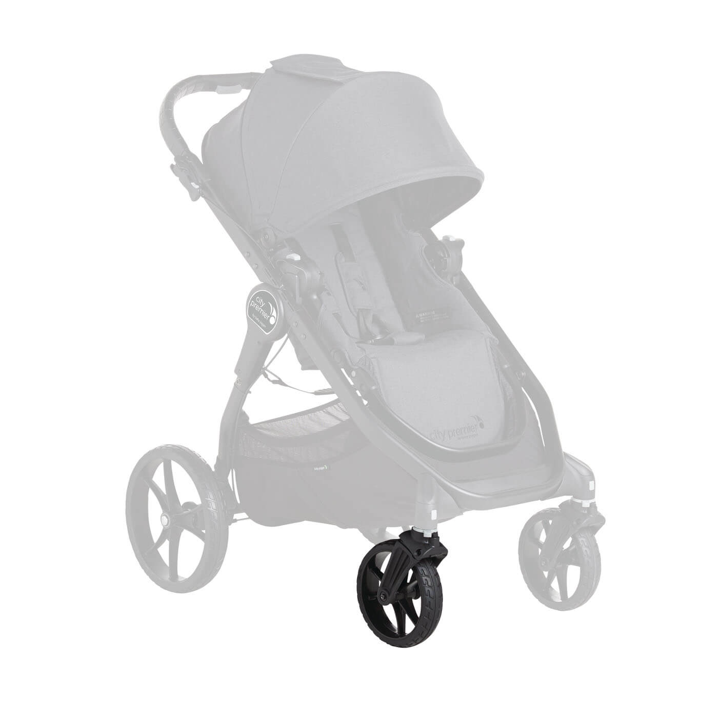 Komplet forhjul med gaffel og støddæmper, der passer til enten en Baby Jogger City Select eller en City Premier.