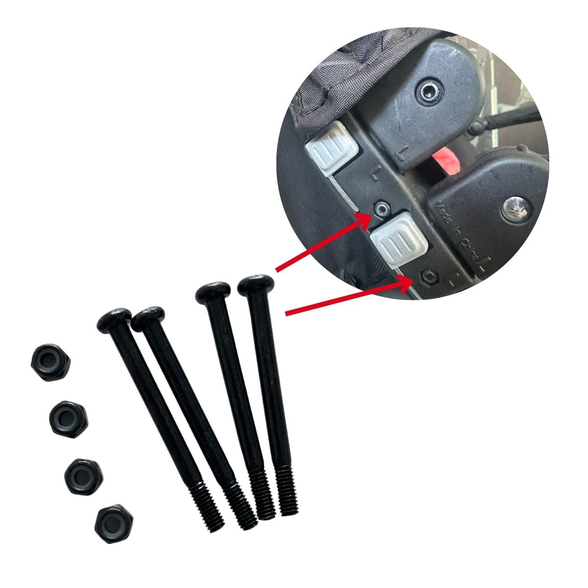 Komplet skruesæt til beslaget på stellet hvor du fastgør frontbøjle og kaleche.