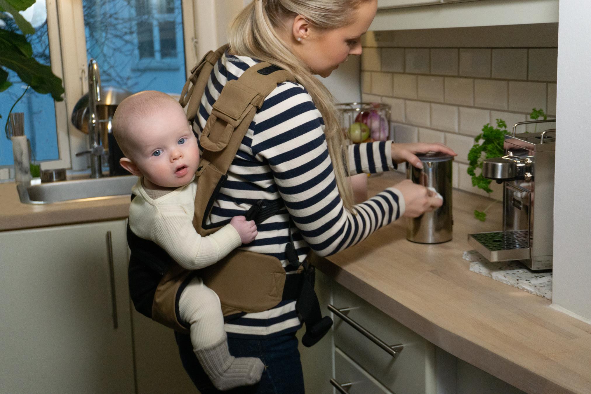 Moova bæreselen er den første bæresele nogensinde, som er designet til specifikt at støtte din babys motoriske udvikling, samtidig med at den er en af de nemmeste og mest enkle bæreseler på markedet.