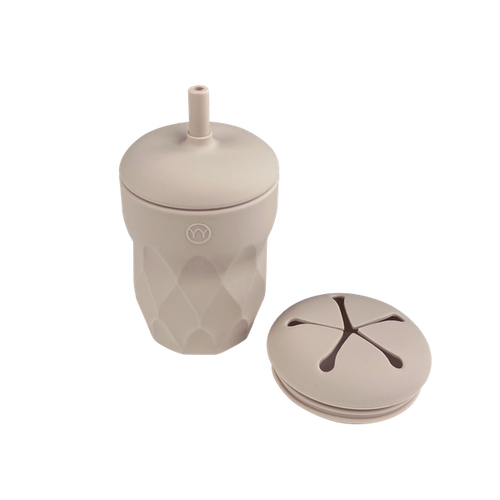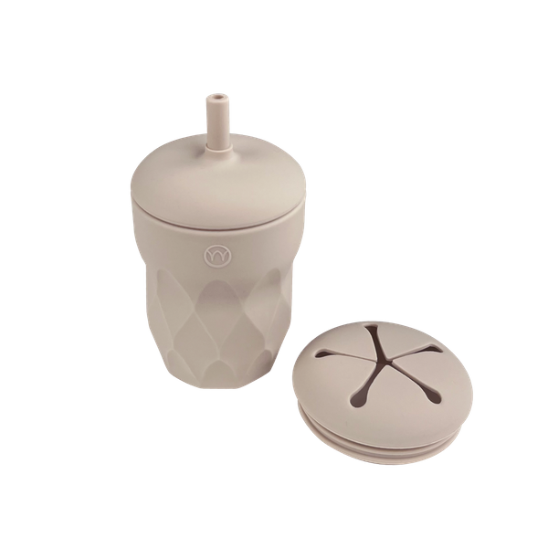 Najell Silikone Kop m. sugerør og snacklåg, Beige