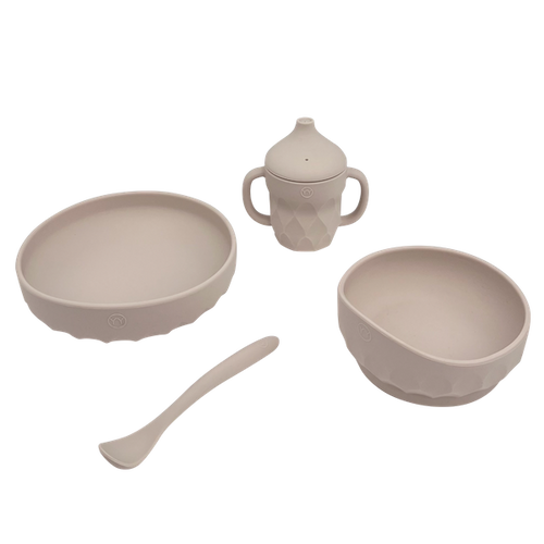Sættet er lavet af 100% fødevaregodkendt silikone og kan bruges i både mikroovn og opvaskemaskine, hvilket gør det til det eneste du behøver for at holde din baby velnæret og fri for rod. Det unikke skandinaviske design tilføjer et strejf af luksus til måltiderne sammen og tilføjer stil til ethvert hjem.