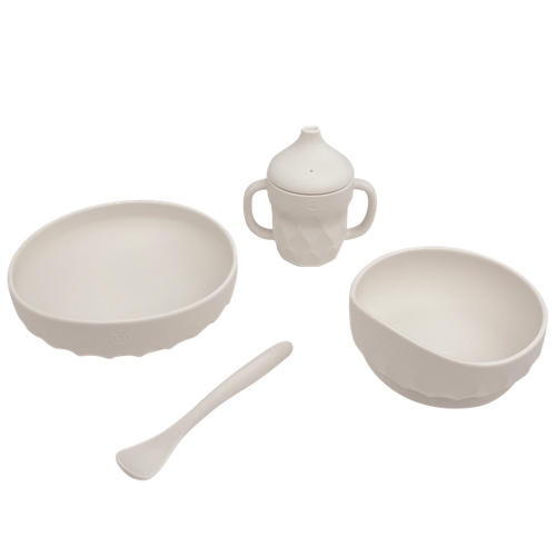 Sættet er lavet af 100% fødevaregodkendt silikone og kan bruges i både mikroovn og opvaskemaskine, hvilket gør det til det eneste du behøver for at holde din baby velnæret og fri for rod. Det unikke skandinaviske design tilføjer et strejf af luksus til måltiderne sammen og tilføjer stil til ethvert hjem.